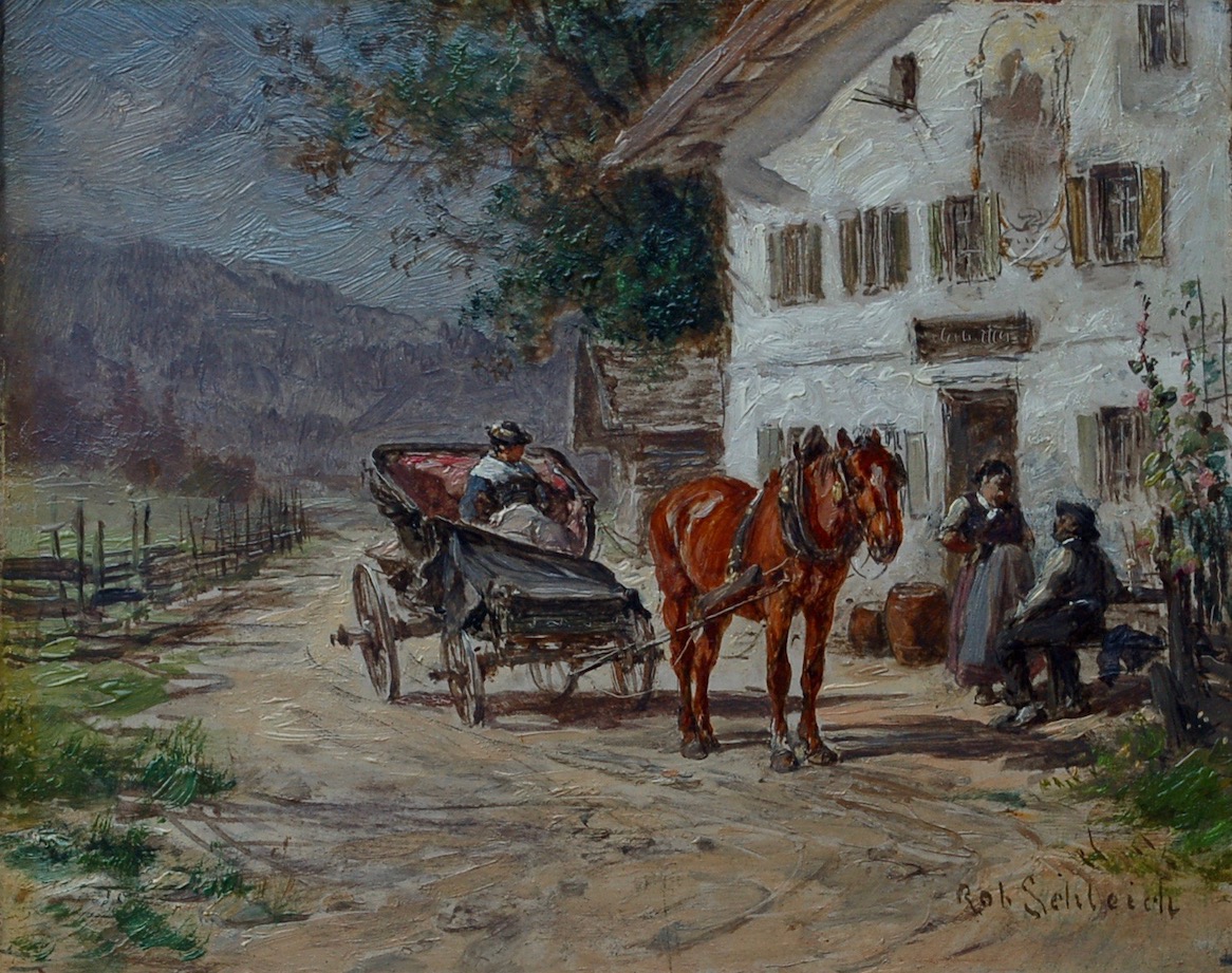 Carriage outside a Bavarian Farmhouse by Robert Schleich 1845-1934